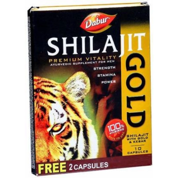 Dabur Shilajit Gold Capsules Ayurvedic Supplement for Men Strength , Stamina and Power | 10 + 2 Free Capsules