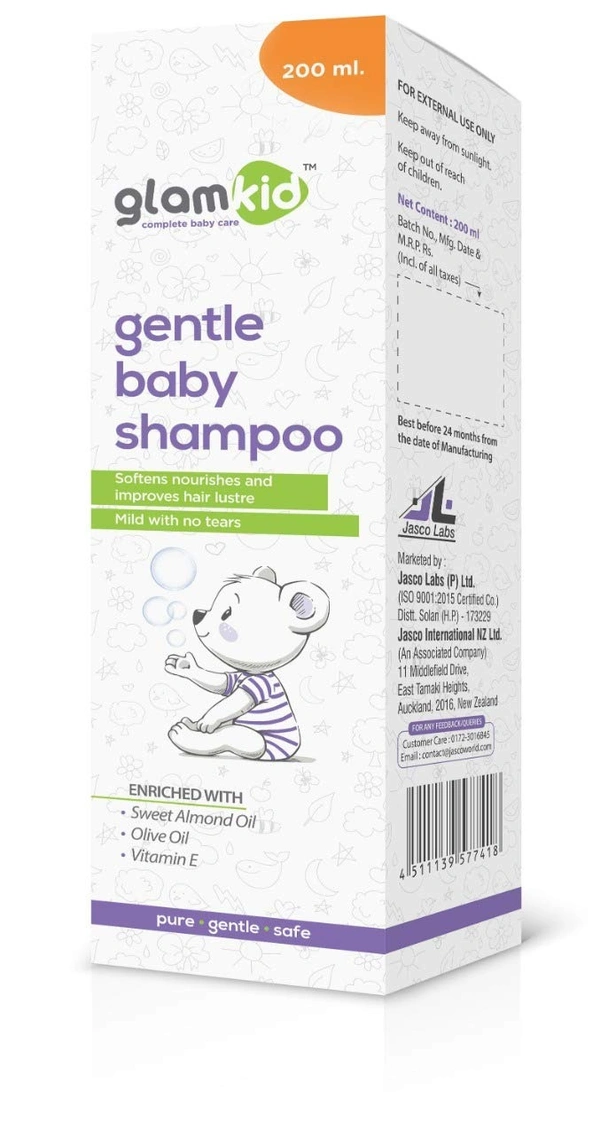 Glamkid Baby shampoo enriched with natural extract of sweet almond & olive oil & vitamin E which nourishes hair making it smooth and shiny. It helps soften, nourishes and improves the baby hair lustre, leaving it smelling fresh and feeling soft. Free from PG, Paraben, Sulphate, no artificial colour, no perfume