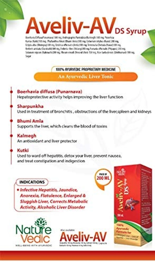 Nature Vedic Aveliv AV- DS Syrup |Ayurvedic liver Detoxer, Improve Digestion, Improve Alcoholic Liver Disorder