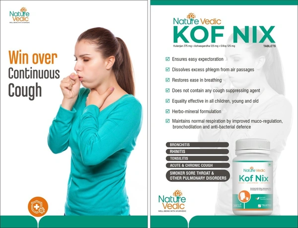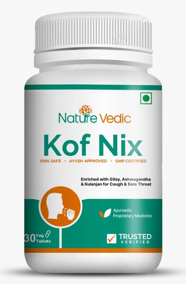 "Nature Vedic Kof Nix Effective for Cough, Sore Throat, Allergic Rhinitis & Sinusitis related problems. Its enriched with 3 effective Ayurvedic Herbs. 100 % Safe Ayush Approved GMP Certified"