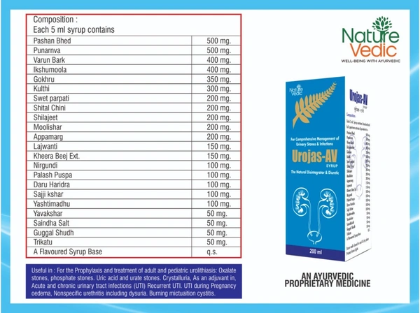 Nature Vedic Urojas - AV Syrup Ayurvedic Formula for Urinary Stones & Infections