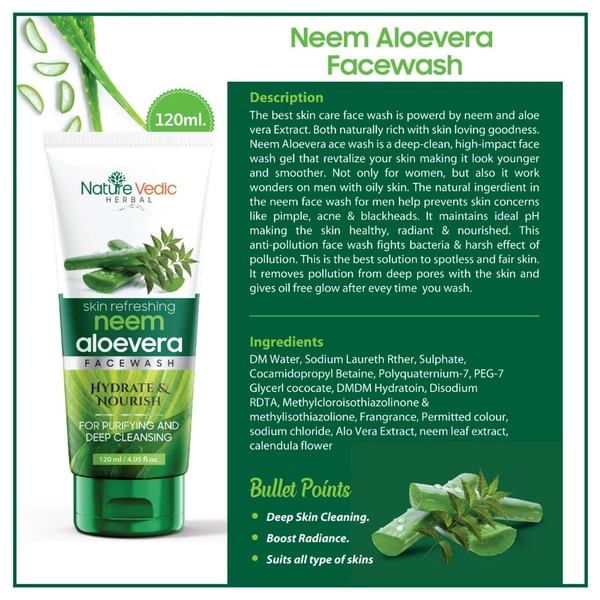 Nature Vedic Neem, Aloe Vera Face wash for Purifying & Deep Cleansing FaceWash