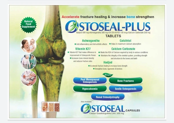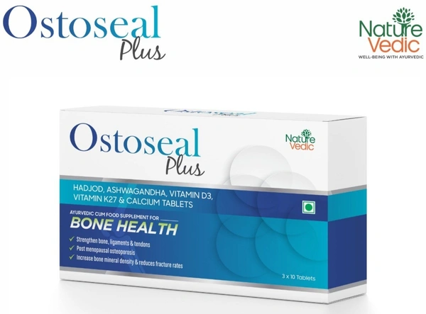 Nature Vedic Ostoseal plus capsules With Hadjod, Ashwagandha, Vitamin D3, Vitamin K27 & Calcium Carbonate For Complete Bone Health | 30 Caps