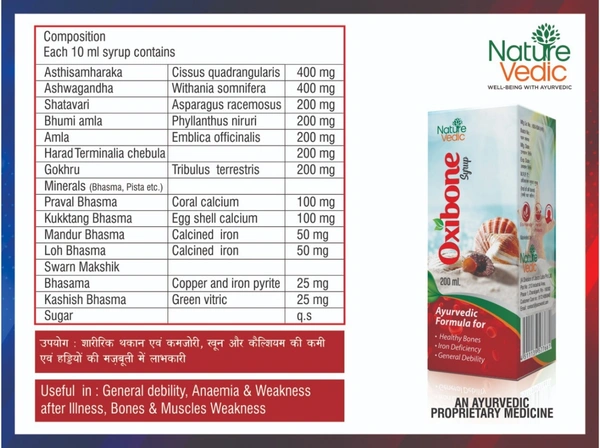 Nature Vedic Oxibone Syrup Ayurvedic Calcium & Iron Supplement For Healthy Bones