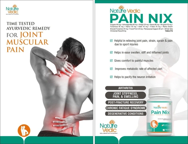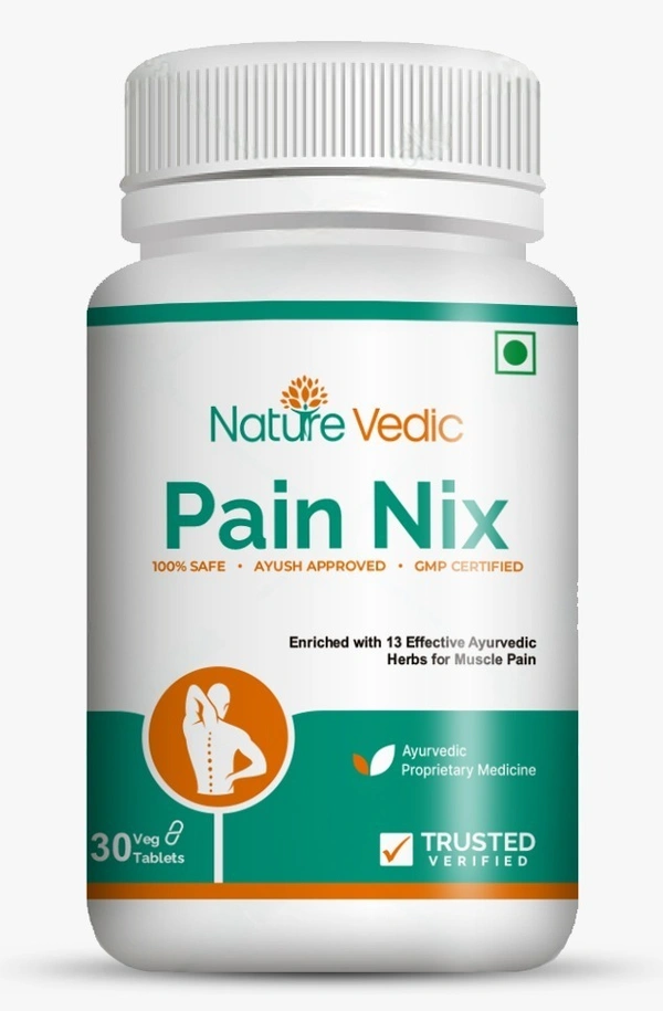 Nature Vedic Pain Nix Effective for Muscle Pain & Osteoporosis related problems. All type of VATA Diseases. Its enriched with 13 effective Ayurvedic Herbs. 100 % Safe Ayush Approved GMP Certified