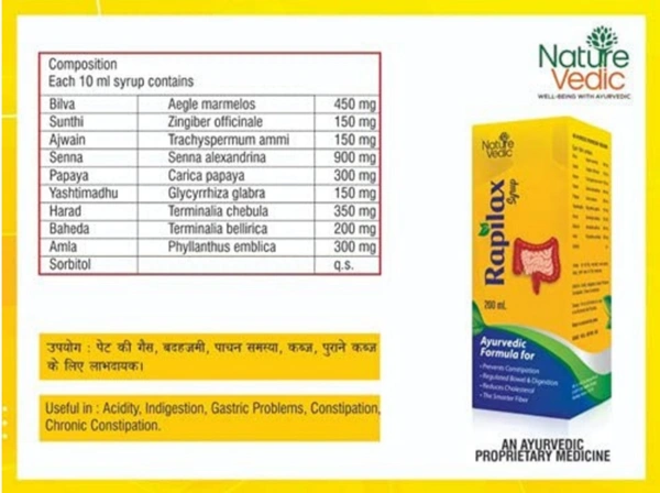 Nature Vedic Rapilax Ayurvedic Syrup for Digestion ,Constipation & Gastric Relief