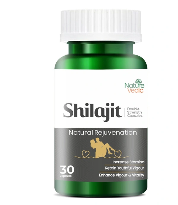 Nature Vedic Shilajit Double Strength Capsules Ayurvedic Supplement for Strength, Stamina and Power