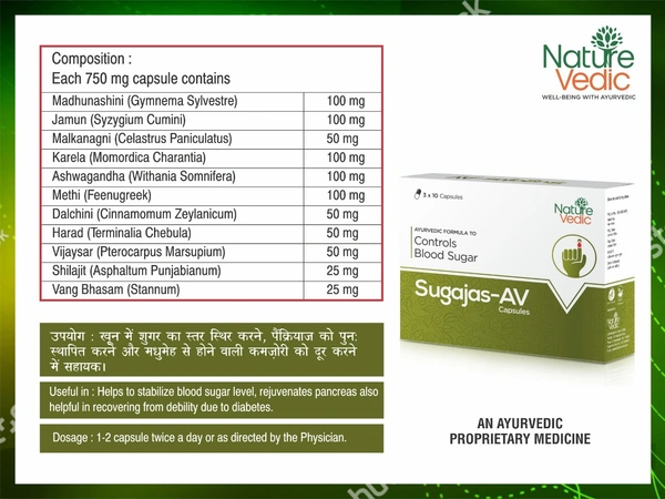 Nature Vedic Sugajas-AV Capsules Ayurvedic Formula for Control Blood Sugar Levels | 30 Caps