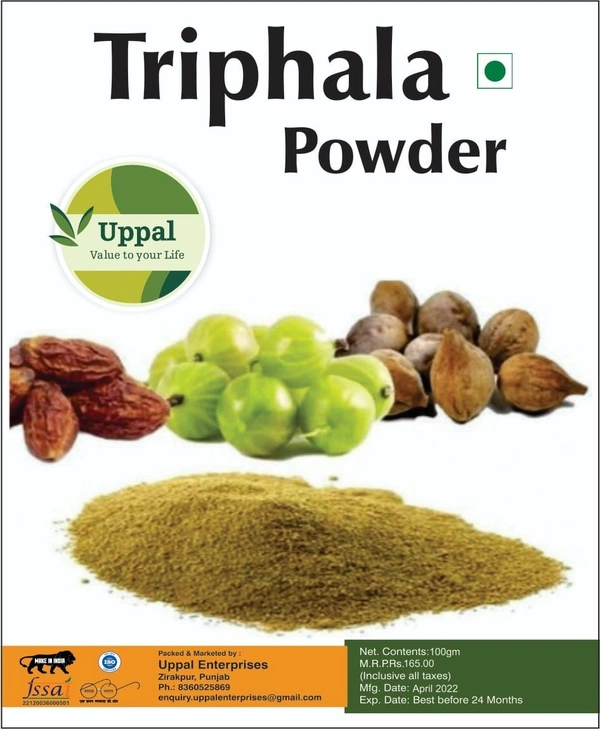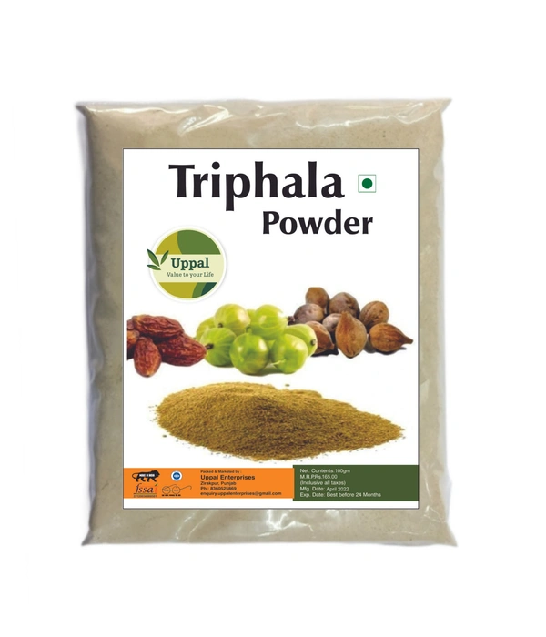 Uppal Natural & Pure Triphala Powder is an Ayurvedic Herbal remedy known for several potential benefits includes Digestion support , weight Loss , Immune System & Back Pain Relief.