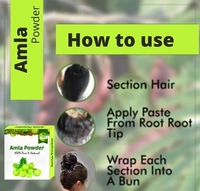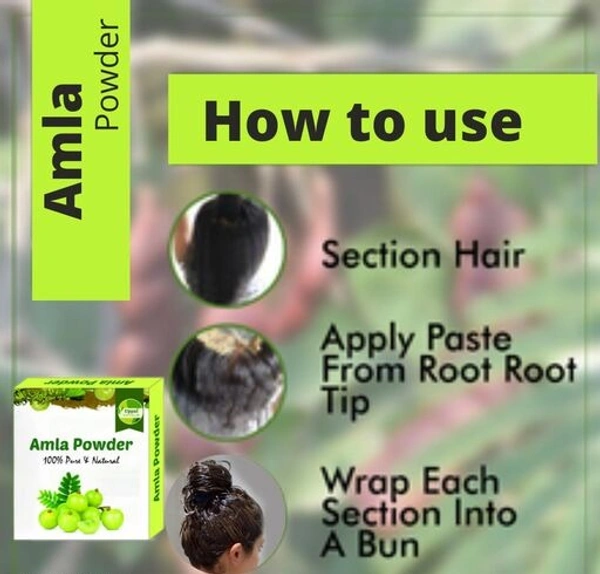 Amla powder is dried amla fruit, ground into a fine powder. Amla is well known as a hair conditioner, but it also has valuable anti-dandruff properties. Amla can also be used in combination with tulsi or basil for action against dandruff and acne. A thin paste can be made by combining amla powder in water or oil. Apply the paste in the hair roots and scalp to provide nourishment to the hair. Leave it on for 15-20 minutes before washing off with a mild cleanser or running water.